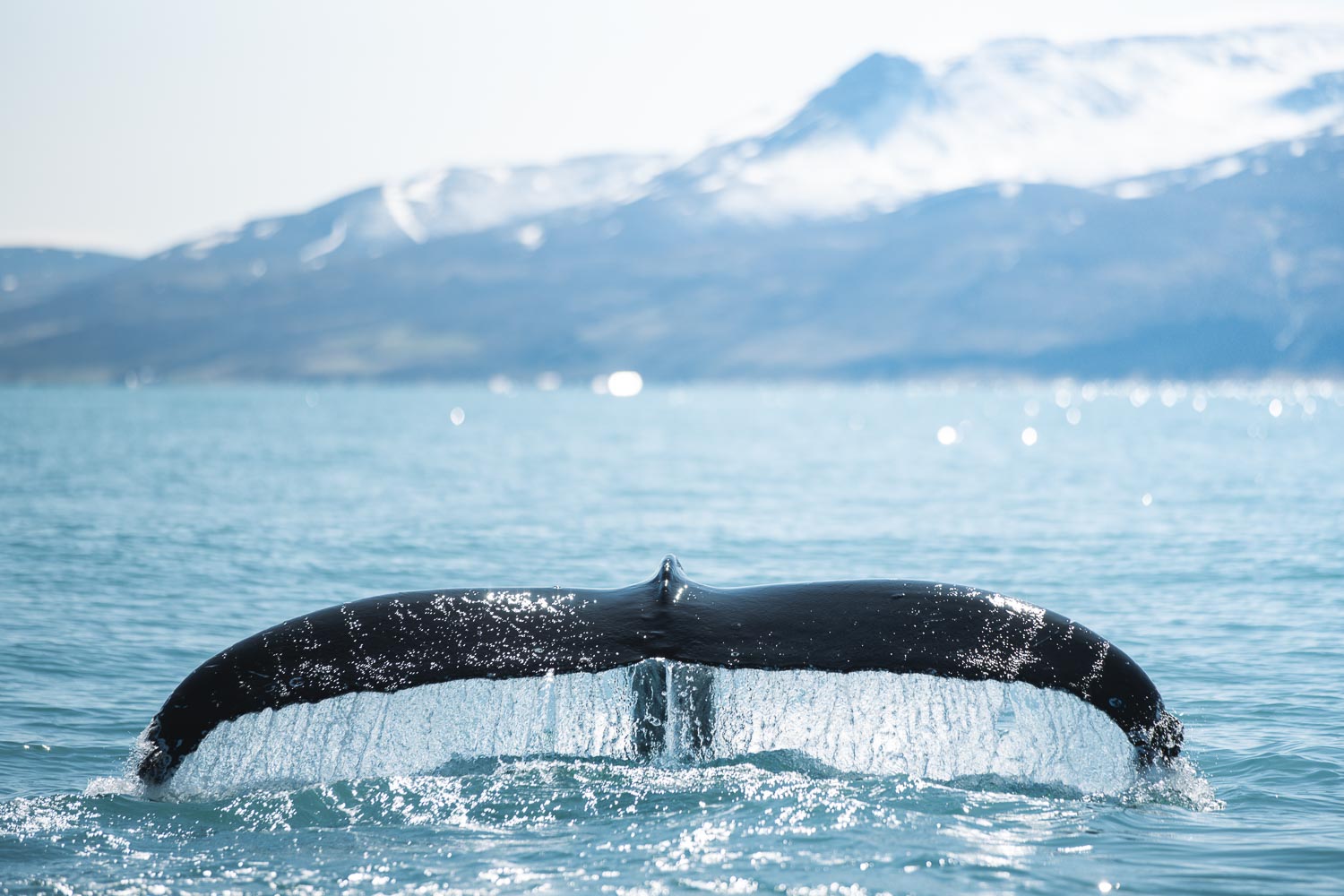 The season is in full swing, and Skjálfandi Bay is bursting with life! Since Easter, we’ve been greeted daily by the iconic fluke dives of many humpback whales, often feeding close to the boat, tail-slapping, and even breaching! All of it set against a breathtaking backdrop of snow-capped mountains on one side of Skjálfandi Bay and the charming town of Húsavík on the other.
