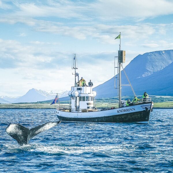 Step aboard our traditional oak boat and enjoy sailing in the calm seas of Eyjafjörður. This tour gives you the unique opportunity to encounter the great wildlife of North Iceland, including whales and seabirds – all under the guidance of our most qualified crew.